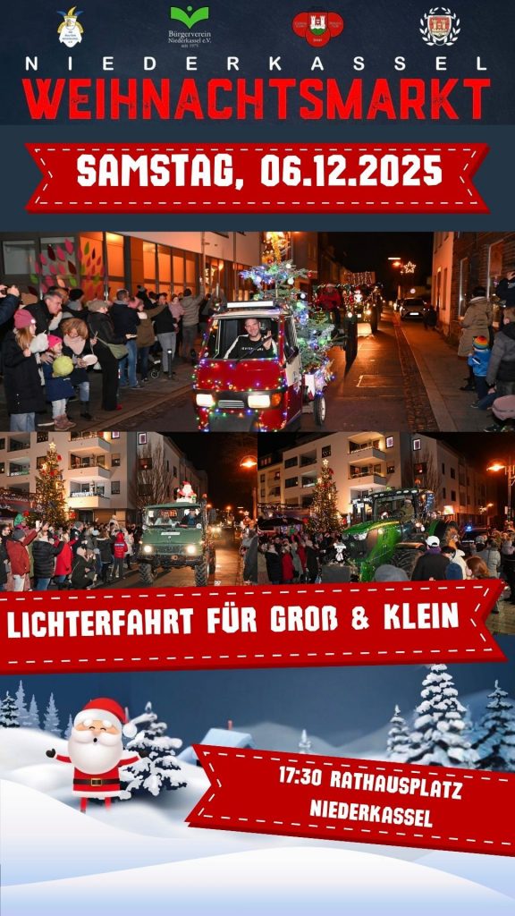 Der Weihnachtsmarkt vom Ortsring Niederkassel findet in diesem Jahr am 6. & 07. Dezember 2025 auf dem Rathausplatz in Niederkassel statt.